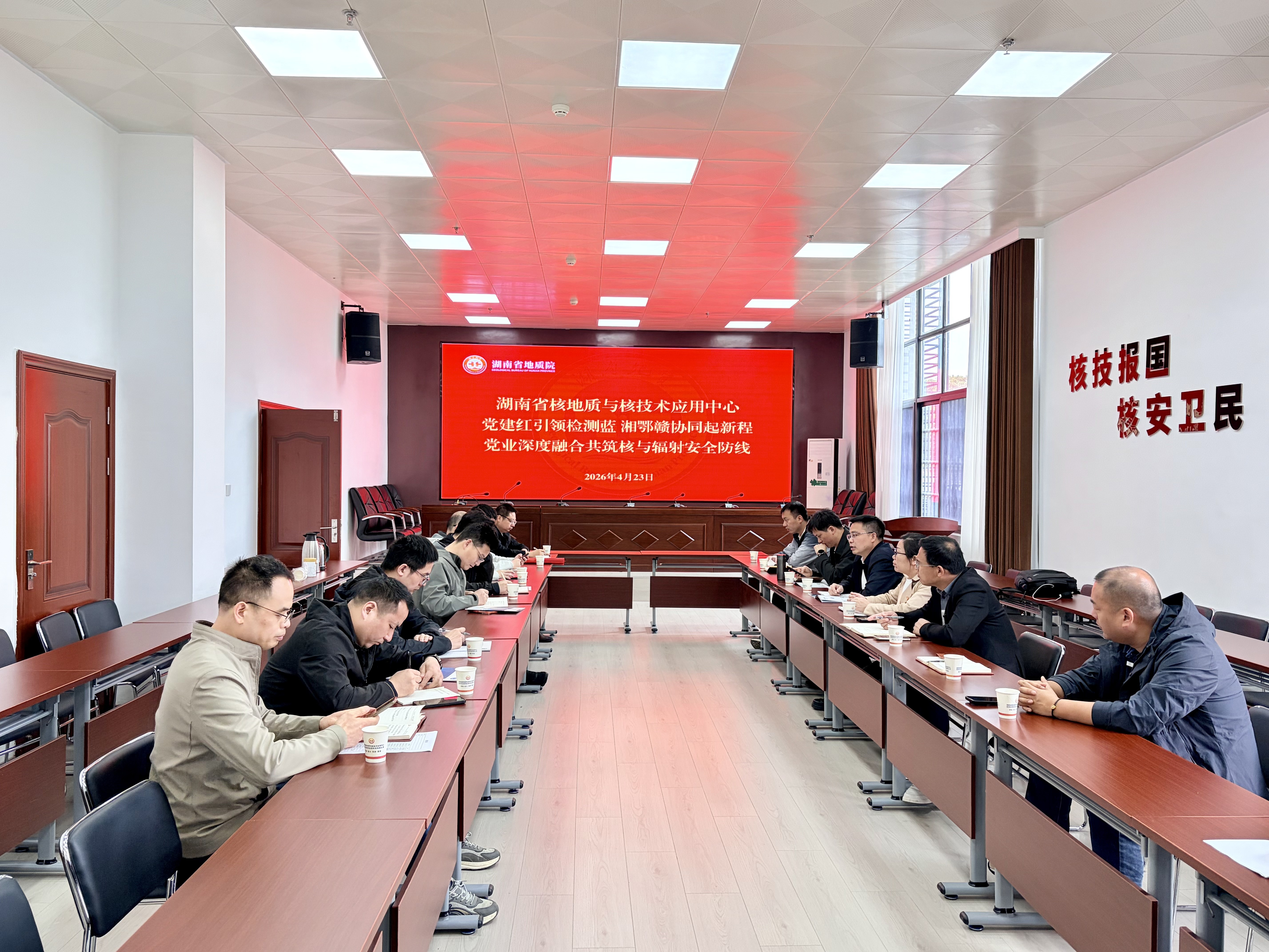 应湖南省核应用中心湘核检测公司党支部邀请,4月23日,我中心党支部与江西省地质局实验测试大队测试中心党支部共同参加了“党建红引领检测蓝 湘鄂赣协同启新程”联合主题党日活动。湖南省核应用中心副主任宋平参加活动。核素中心党支部副书记李安邦、副主任杨智翔及三名技术骨干参加。