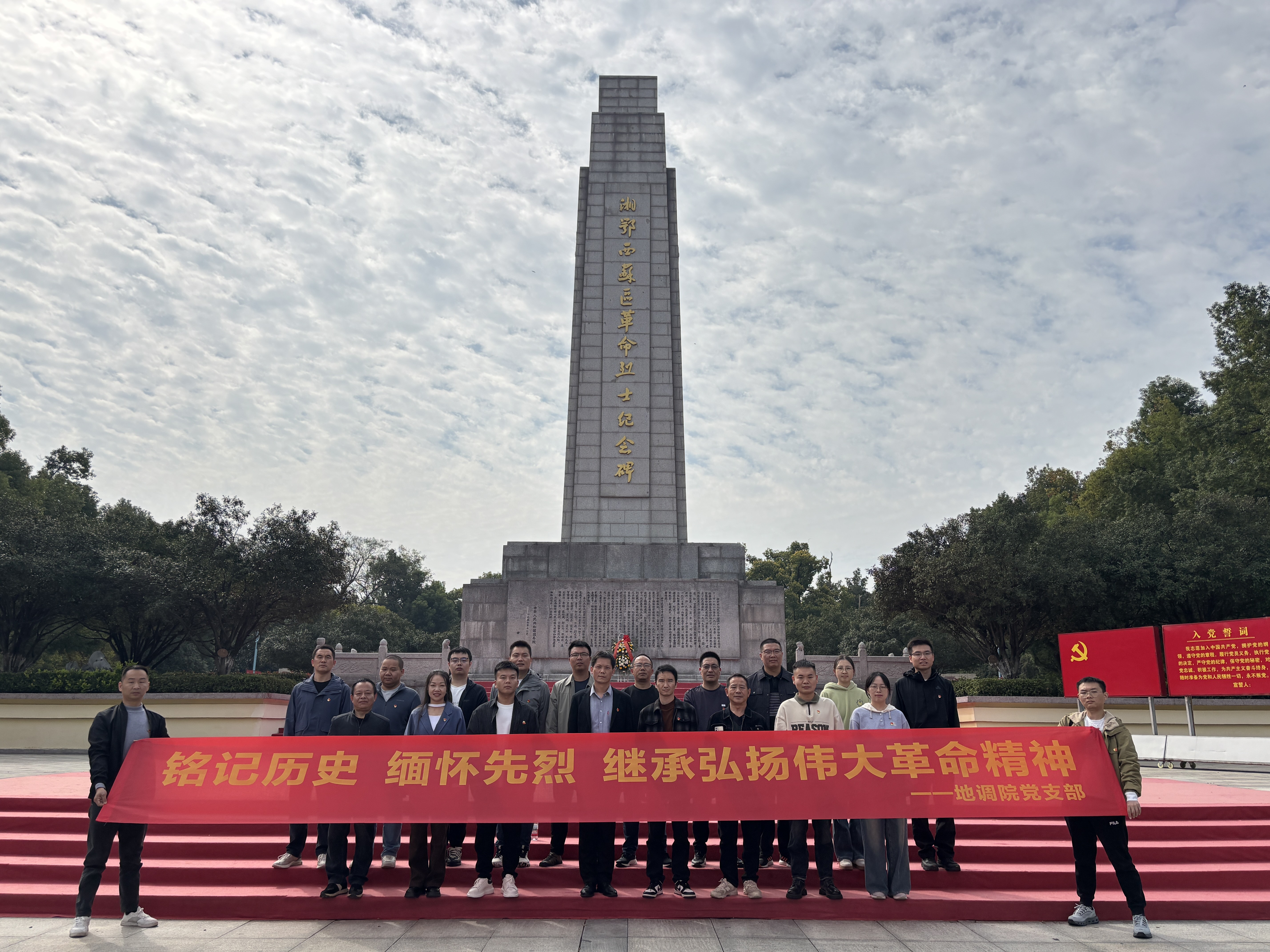 10月29日,地调院党支部组织全院党员、发展对象及入党积极分子赴洪湖市湘鄂西苏区革命烈士陵园与瞿家湾革命根据地旧址群,开展主题为“铭记历史,缅怀先烈,继承弘扬伟大革命精神”的红色教育活动。