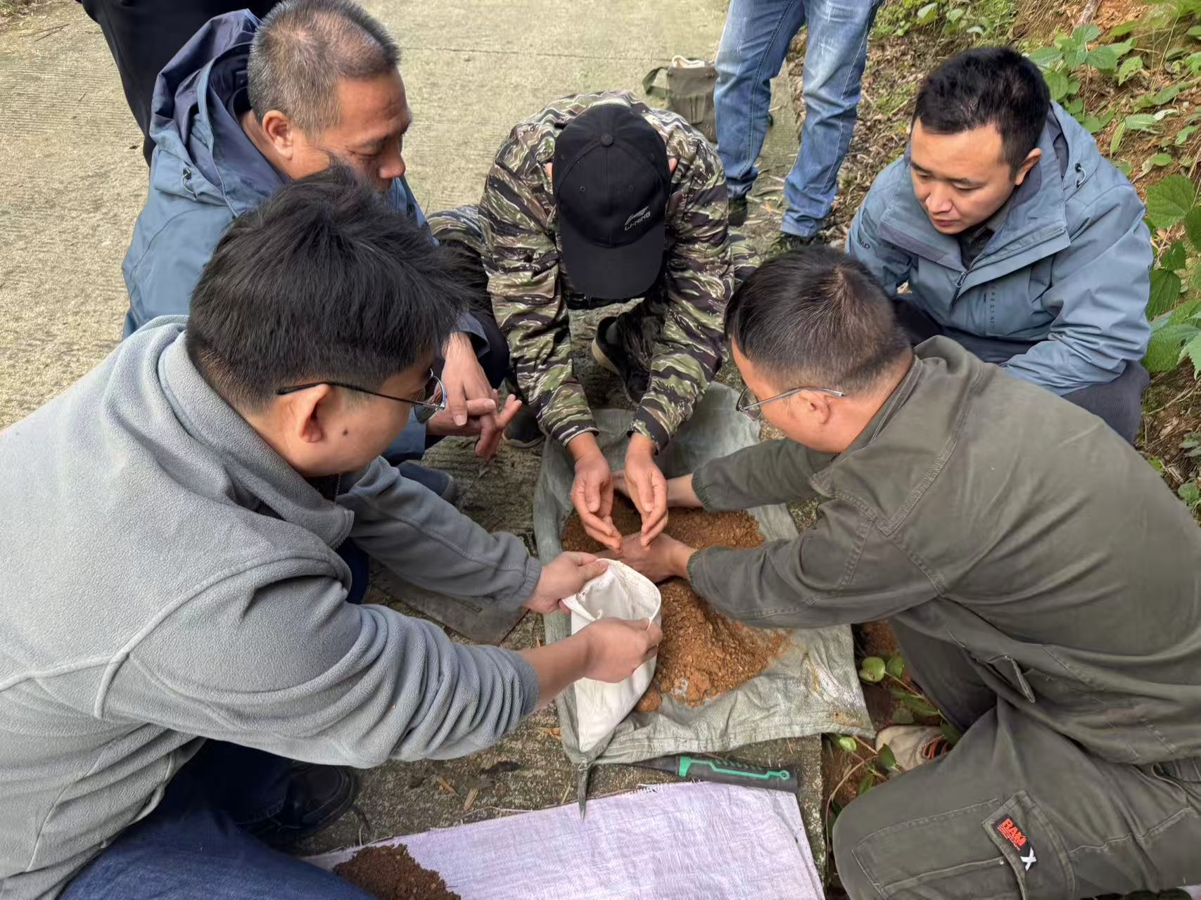 两位专家深耕华南地区矿产勘查、区域地质演化研究领域多年,对鄂东地区岩浆岩成矿规律、沉积型矿产勘查技术有着深厚的理论积淀和丰富的实践经验,与张塝地区地质背景及项目勘查需求高度契合。在野外现场,专家团队沿着勘查剖面实地踏勘,细致查看了地层露头、矿化蚀变带、钻孔孔位现场及样品储存情况,详细询问了地质填图精度、物化探数据采集规范、矿化线索追踪等关键环节进展,并针对张塝地区复杂地质构造识别、矿化信息有效提取等技术难点,结合区域地质背景给出了针对性解决方案。