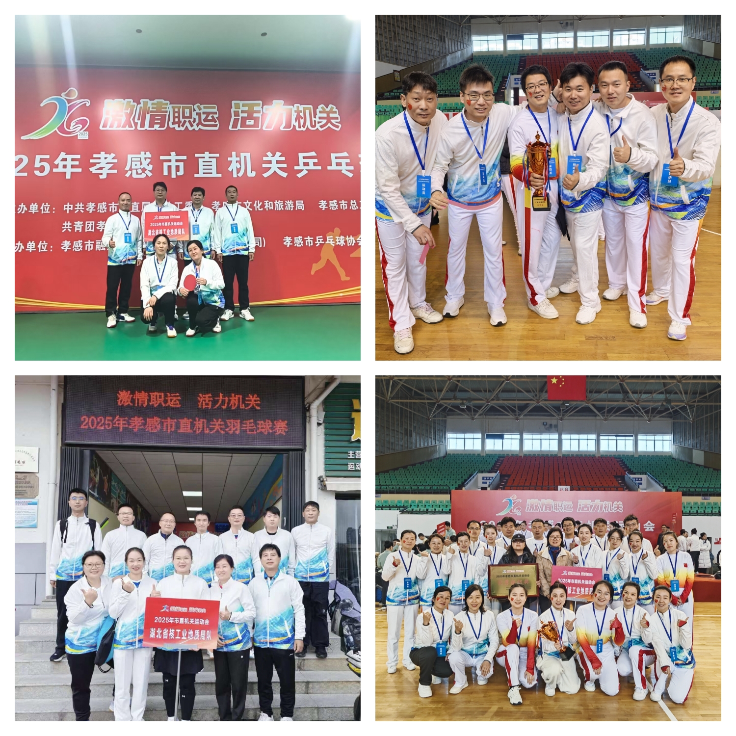 湖北省核工业地质局在本次运动会中参加多项赛事,并交出一份满意的答卷。参赛队员们在赛场上团结协作、不畏强手,充分彰显了核地铁军强大的向心力和战斗力。面对弱势项目,始终不畏困难,趋光而行,展现了核地质人锐意进取、奋勇争先的拼搏精神!最终广播体操项目荣获“三等奖”,乒乓球项目、拔河项目成功闯入16强,单位荣获“优秀组织奖”。