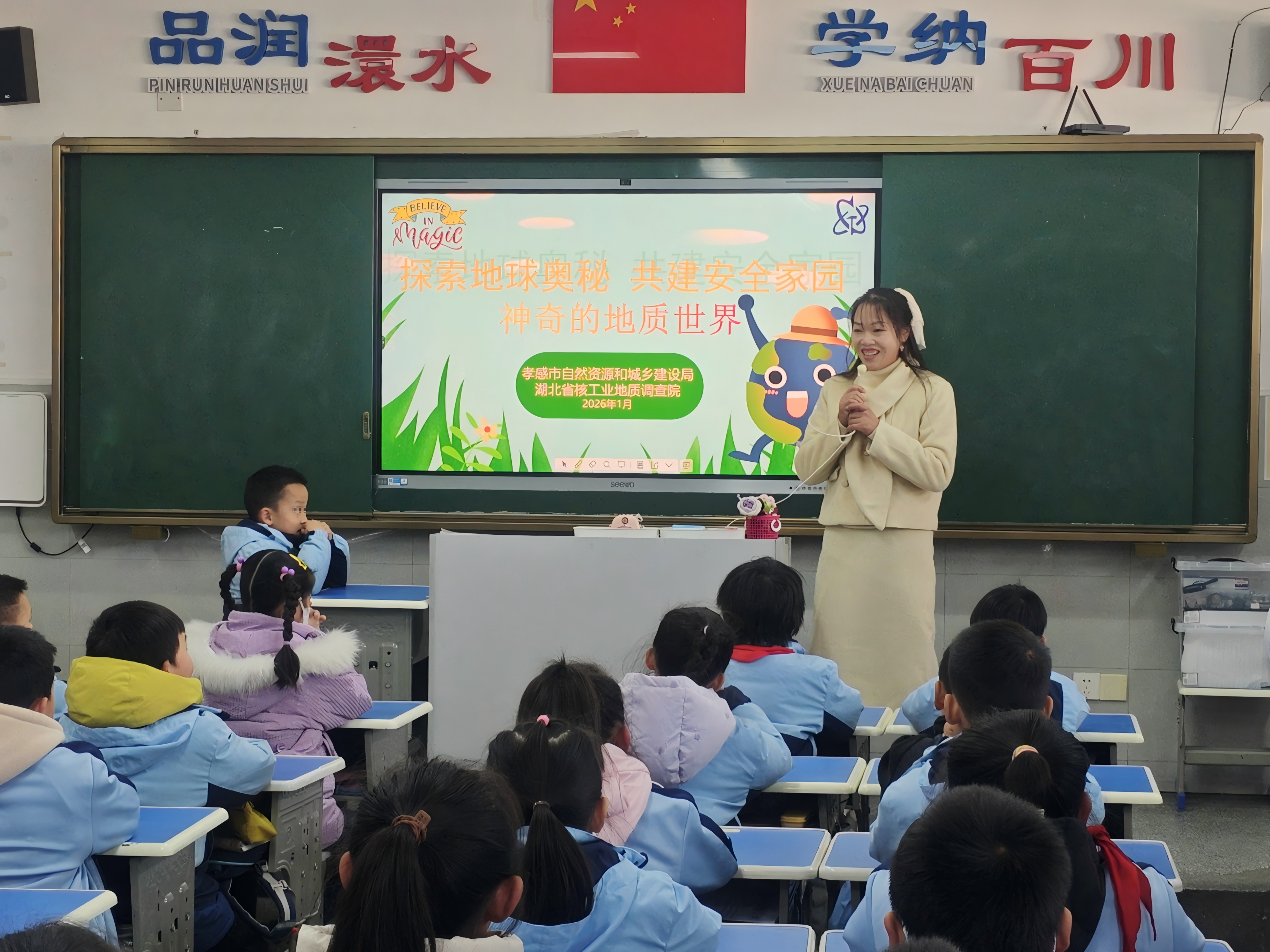 2026年1月7日,我院党支部联合孝感市自然资源和城乡建设局,走进孝感市澴川小学,以“探索地球奥秘,共建安全家园”为主题,为60余名师生带来了一堂生动有趣的地质科普课。