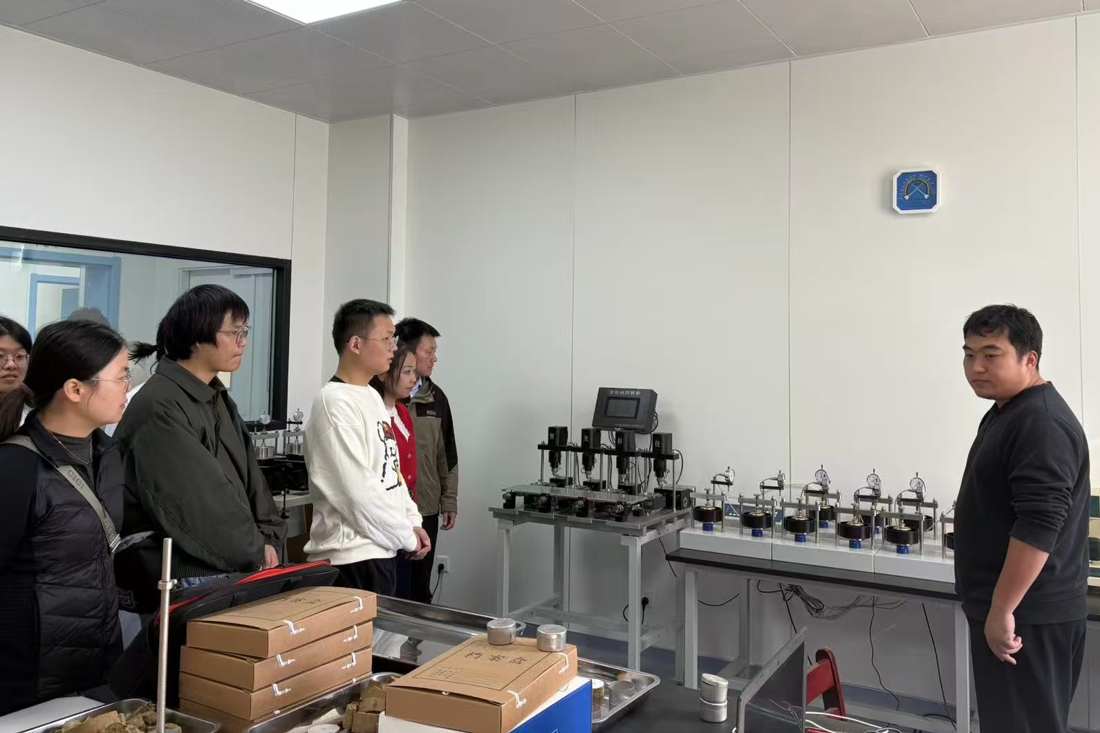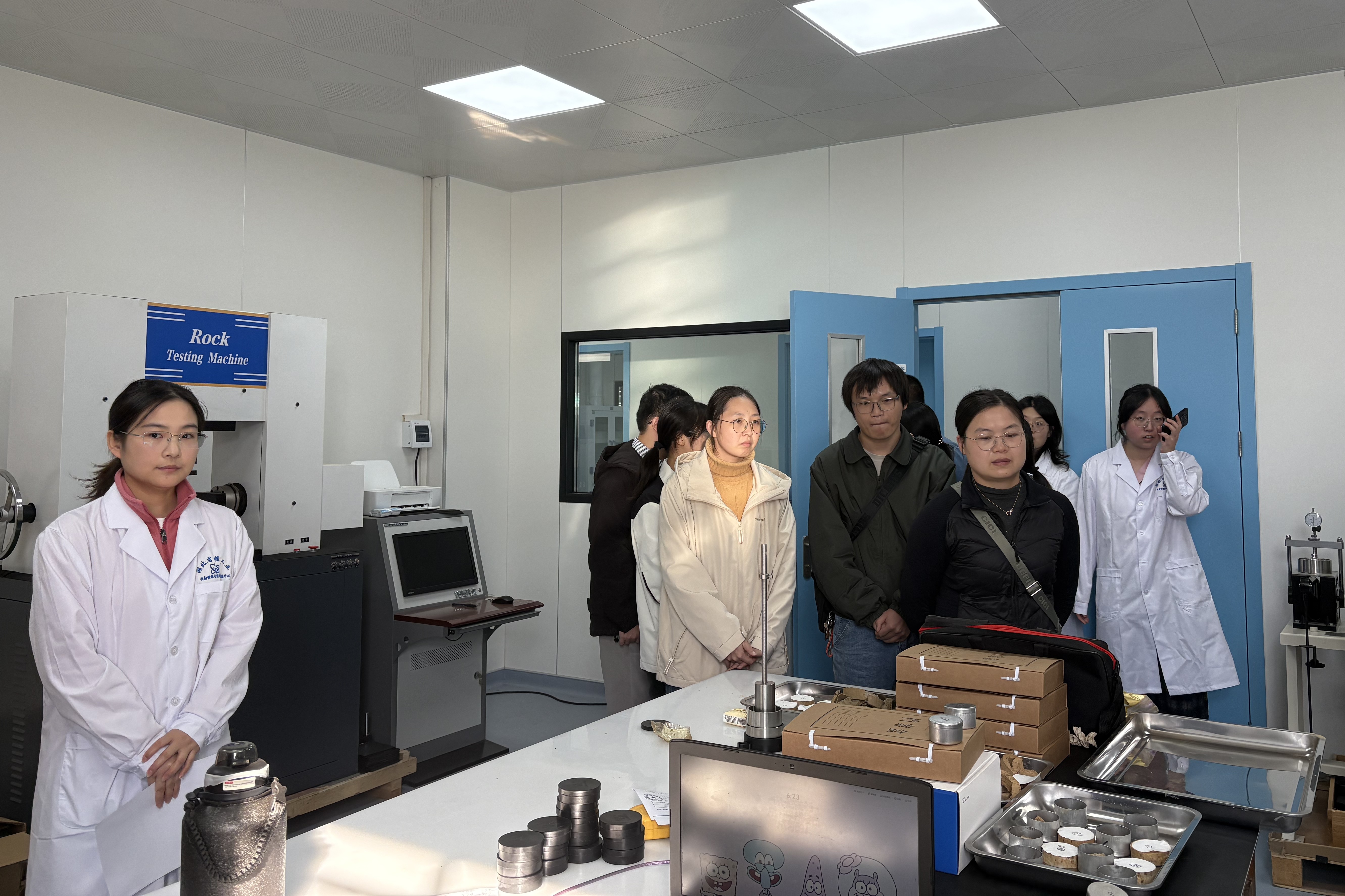 在安陆地区,大家首先深入地调院项目工地,实地观摩典型地质现象与剖面结构,了解仁和店铀矿远景调查项目进展;随后前往工勘院在城区的勘察项目现场,熟悉项目基础设施建设勘察,进一步增强了对野外地质工作和工程实践的直观理解。此后,大家走进核素实验室,近距离认识分析流程与设备应用;参观寒武纪创新工作室,感知地质科研的前沿动态。各站点讲解员专业细致的介绍,激发了大家的深入思考和热烈交流。