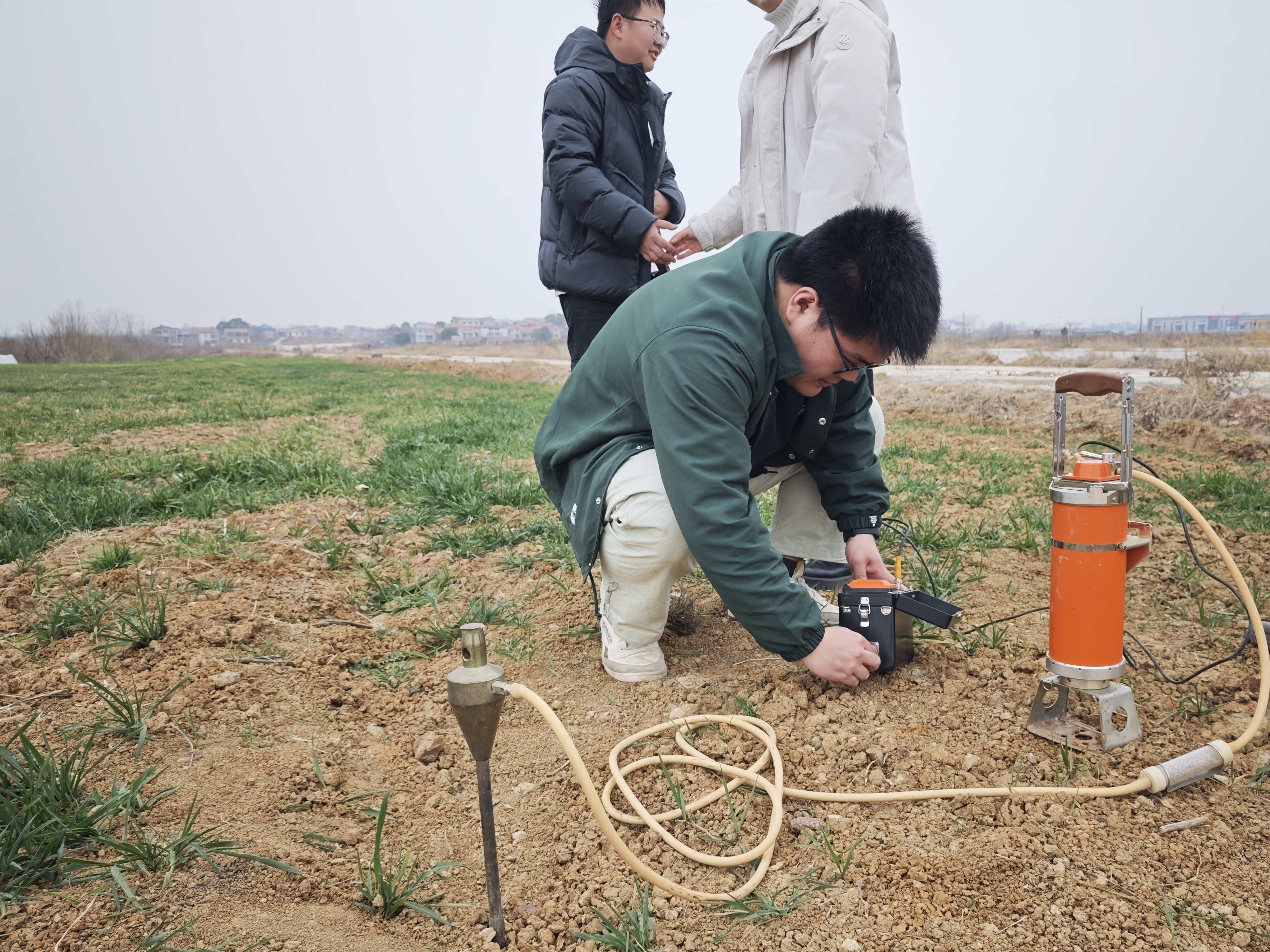 培训严格参照《民用建筑工程室内环境污染控制标准》(GB 50325-2020),系统讲授土壤氡检测理论及实操技能,参训人员在产业园地块分组开展智能测氡仪实操训练,教学团队全程指导标准化操作。